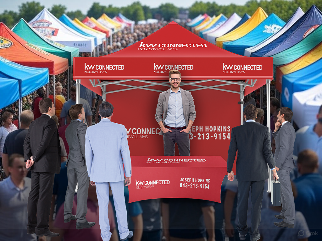 In a sea of booths, your branded tent is a beacon. It pulls customers right to you, making your spot the one they can’t miss.