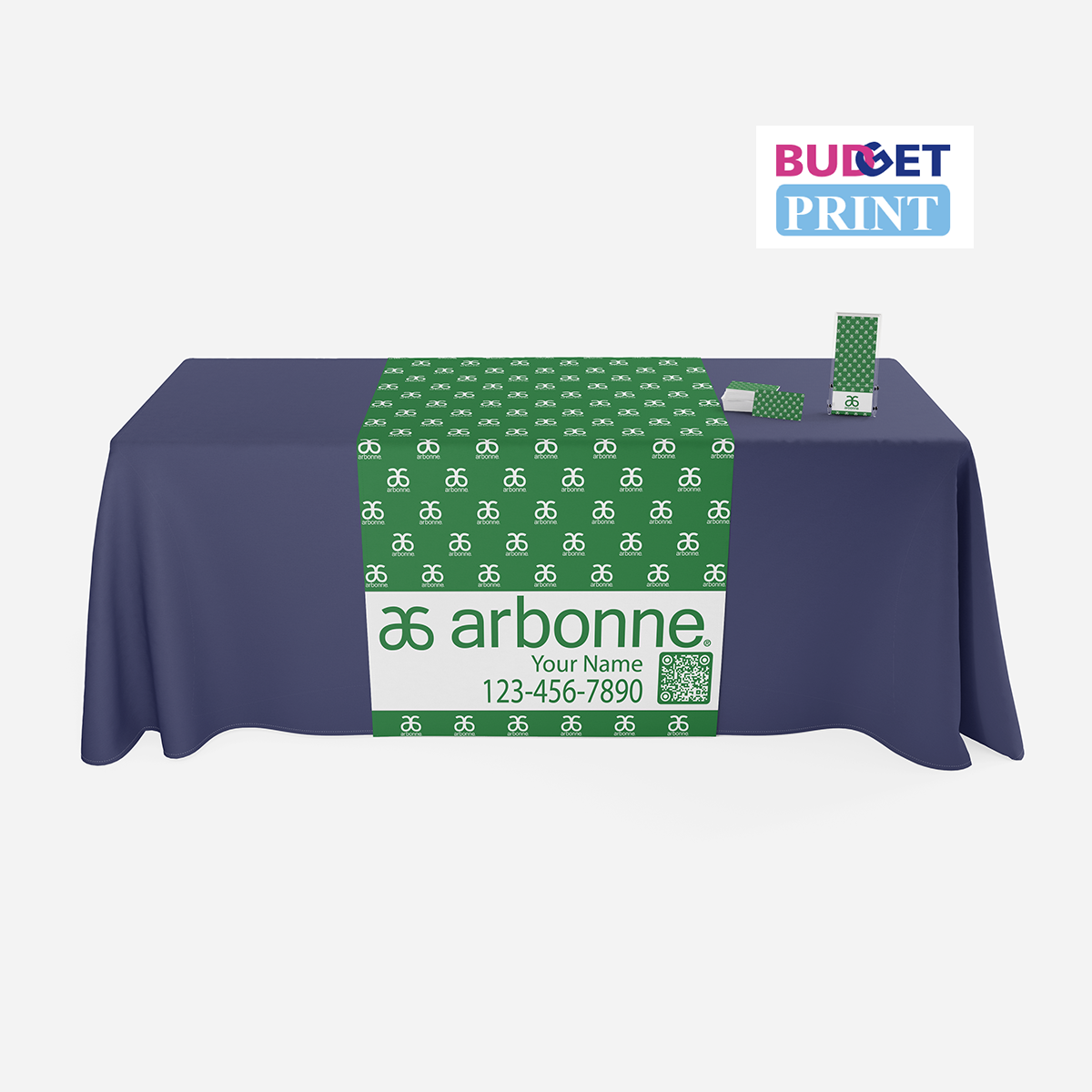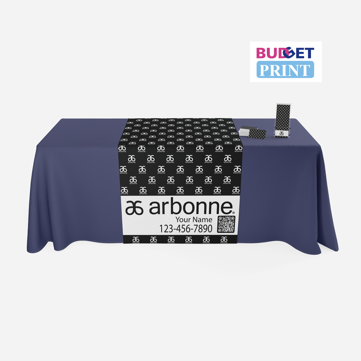 Stand out from the crowd with a professional, branded table runner designed to attract attention, engage clients, and reinforce your Arbonne business identity. Personalized options, QR codes, and store links make it easier than ever for potential clients to connect with you.