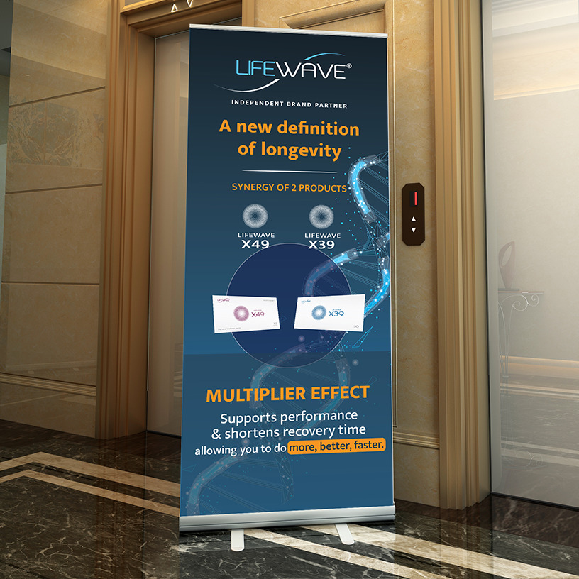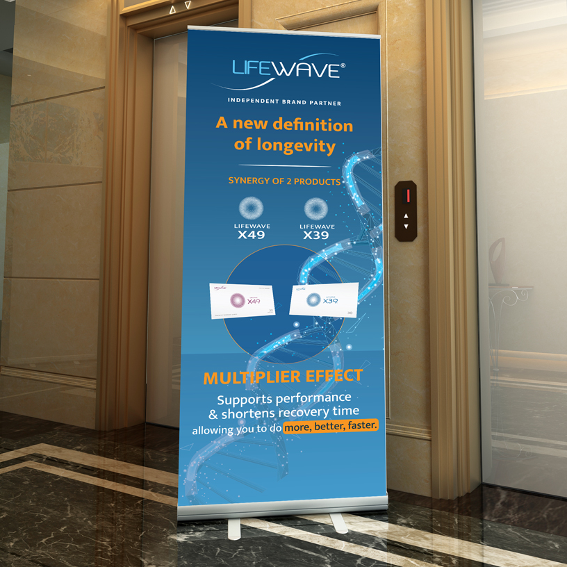 As a LifeWave consultant and brand partner, having a LifeWave branded roll-up banner (33×81) is an invaluable tool that elevates your marketing presence at any event. This banner provides instant brand visibility, making a professional and memorable first impression. The vibrant, high-quality display showcases your commitment to the LifeWave products, helping to engage potential clients and business partners. Whether you’re at trade shows, wellness events, or personal meetings, this banner acts as a silent partner, promoting the benefits of LifeWave’s cutting-edge health and wellness solutions while allowing you to focus on personal interactions.